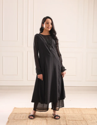 4. Midnight Aura Black Kurta Set – Timeless Elegance in Every Thread